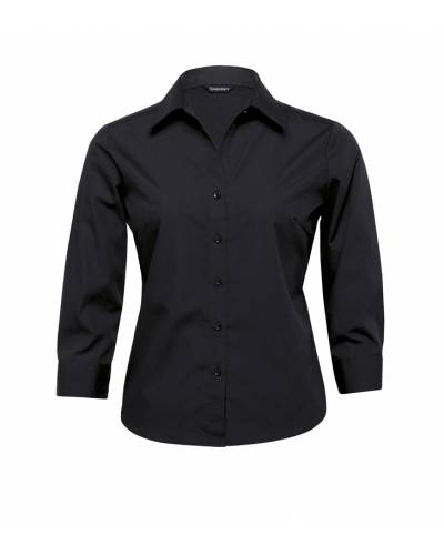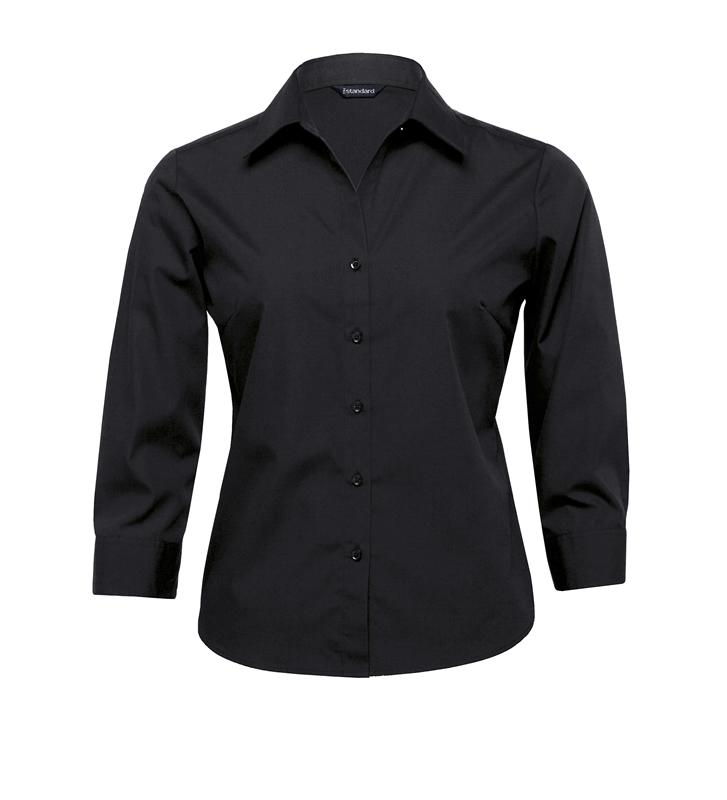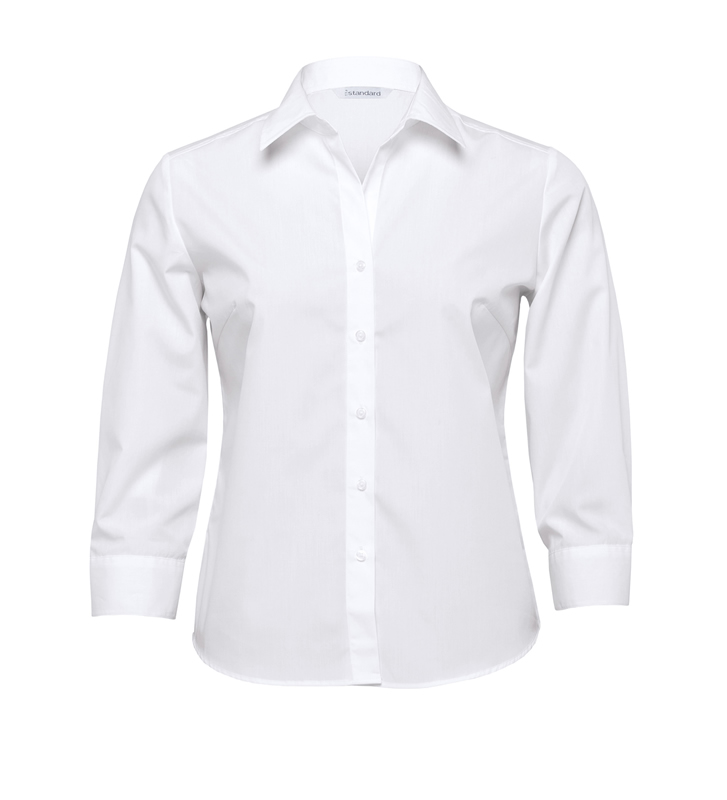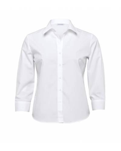 65% polyester 35% cotton poplin treated with DuPont™ Teflon® | Classic fit | Fashion collar | Shaped body detailing front and back | ¾ length sleeves | Contoured hemline