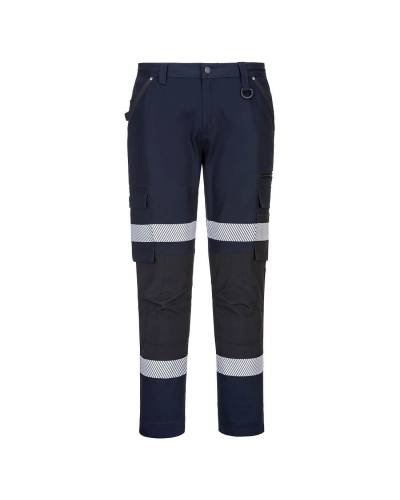 Contemporary work pants made from highly durable ripstop fabric that stretches as you move. Subtle articulation on the knees allow for increased freedom of movement and a high rise back waistband ensures protection in all working positions. Packed with functionality including pre-bent knees, a crotch gusset, two tier knee pad pockets and an adjustable leg length for added convenience. Multi-functional thigh pockets provide secure storage of phones, pens and tools.